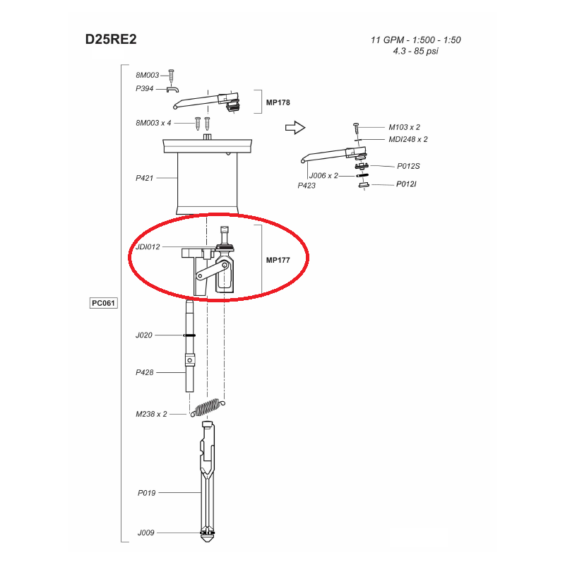 Medikátor Dosatron D25RE2 0,2 - 2% náhradní díly, dávkovací hlava
