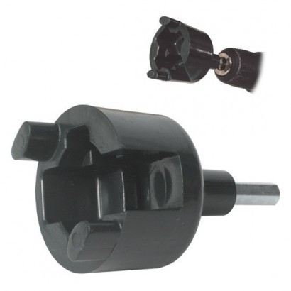 Jednoduchý přípravek k montáži izolátoru pro elektrický ohradník IRUVIS a kroužkových izolátorů s vrutem pomocí AKU šroubováku nebo vrtačky.
