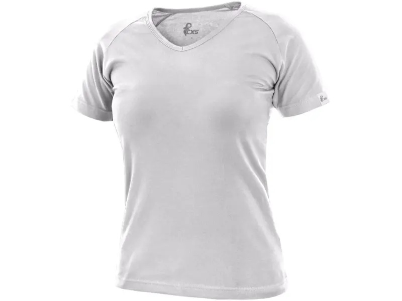 Dámské tričko s průkrčníkem do V, vhodné pro práci i volný čas. Krátký rukáv raglánového typu. Střih zvýrazňující dámskou postavu a elastan pro pružnost a dlouhodobé udržení tvaru. Finální silikonová úprava materiálu, která zajišťuje vyšší měkkost a odolnost vůči zašpinění. Saténová vnitřní etiketa. Vhodné pro potisk a výšivku.